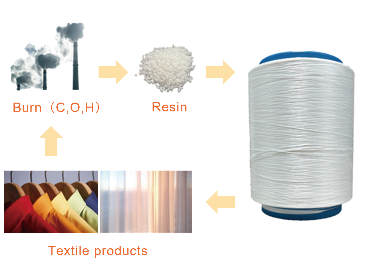 繊維業界では、製品の大半に石油由来の合成繊維が使用されていることから、ポリアセタール樹脂(POM樹脂)原料とした、サスティナブル繊維の開発を行っています。既存合成繊維の代替え品として導入をめざしています。